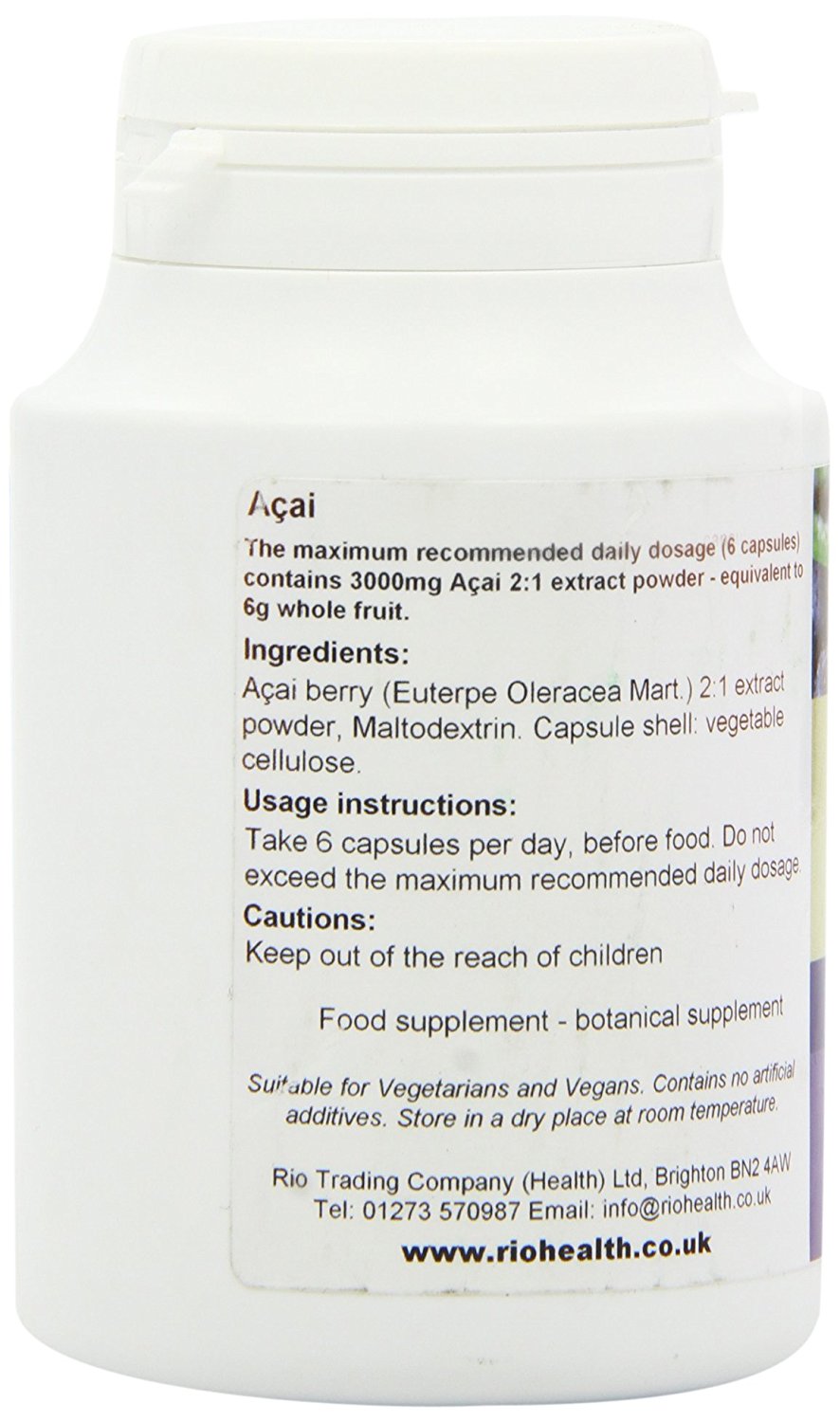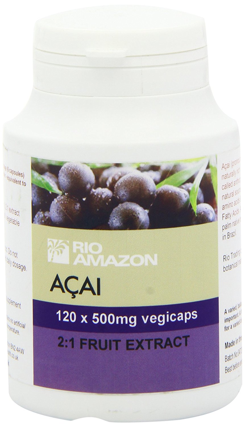 Rio Amazon 500mg Acai Extract Vegetarian Capsules are super antioxidant stabilized at 10 percent polyphenols. Rich source of plants sterols, vitamins (B1, C, A and E) and minerals. The Acai (pronounced ah-sigh-ee) is the dark purple, nutrient-rich, fruit of a wild palm which grows abundantly in the rainforests of the Amazon. Acai is loaded with purple pigment anthocyanins, a particular flavonoid known for its antioxidant capacity and ability to minimise the damage to cells from free radicals. Available in 120 capsules.