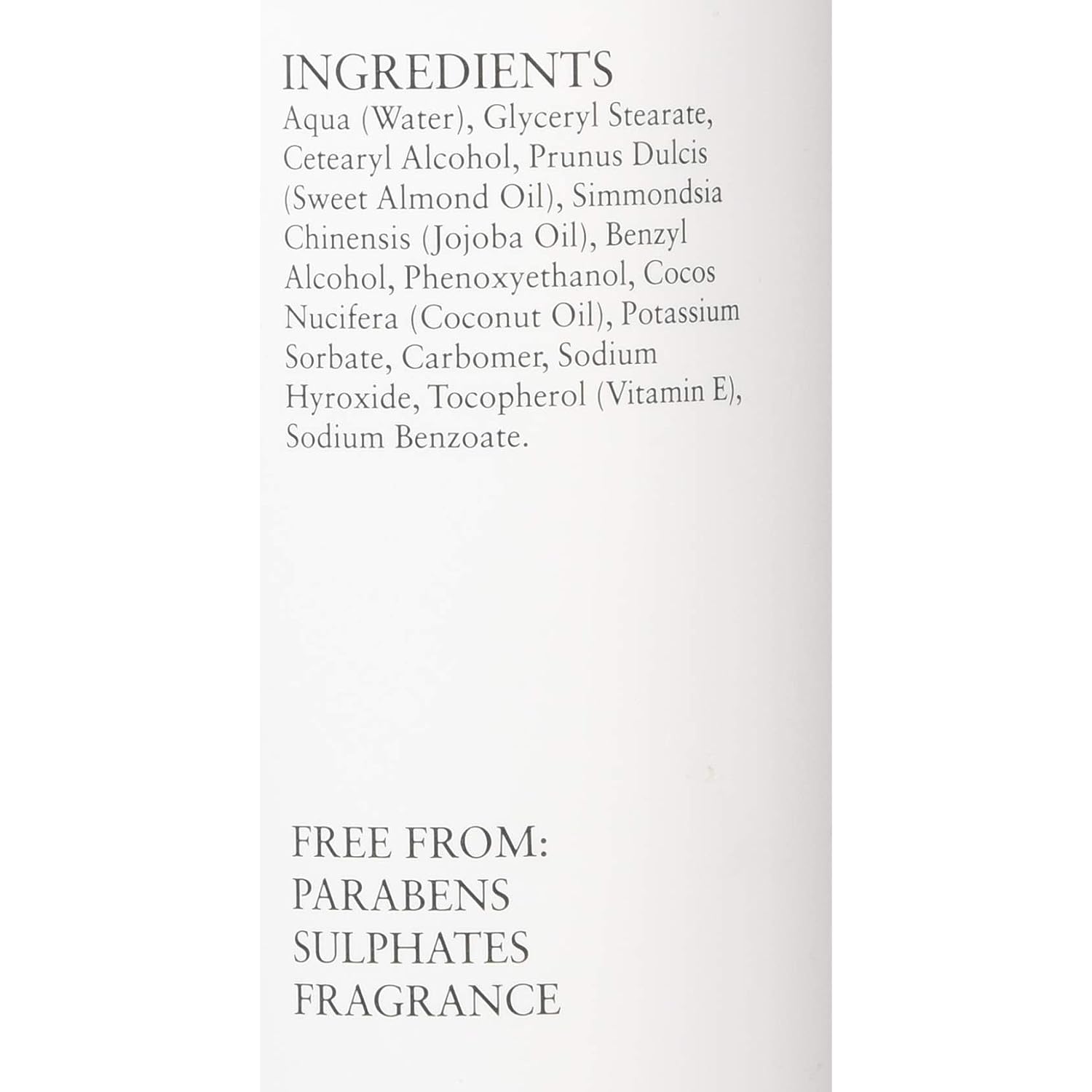 IngredientsAqua, Aqua and Centaurea cyanthus, Aqua and Hamamelis virginiana, Caprylic/Capric Triglyceride, Glycerin, Stearic Acid, Glyceryl Stearate, Peg100 Stearate, Cetearyl Alcohol, Triethanolamine, Gluconolactone, Sodium benzoate, Calcium gluconate