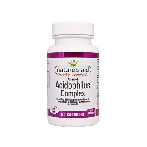 Natures Aid Acidophilus Complex 5 Billion contains 5 billion live organisms of Lactobacillus acidophilus, Lactobacillus rhamnosus and Lactobacillus casei. Ingredients: Microcrystalline Cellulose, Cellulose, Probiotic prep (Lactobacillus acidophilus, Lactobacillus rhamnosus, Lactobacillus casei, Maltodextrin), Anticaking Agents (Silicon Dioxide, Vegetable Source Magnesium Stearate).