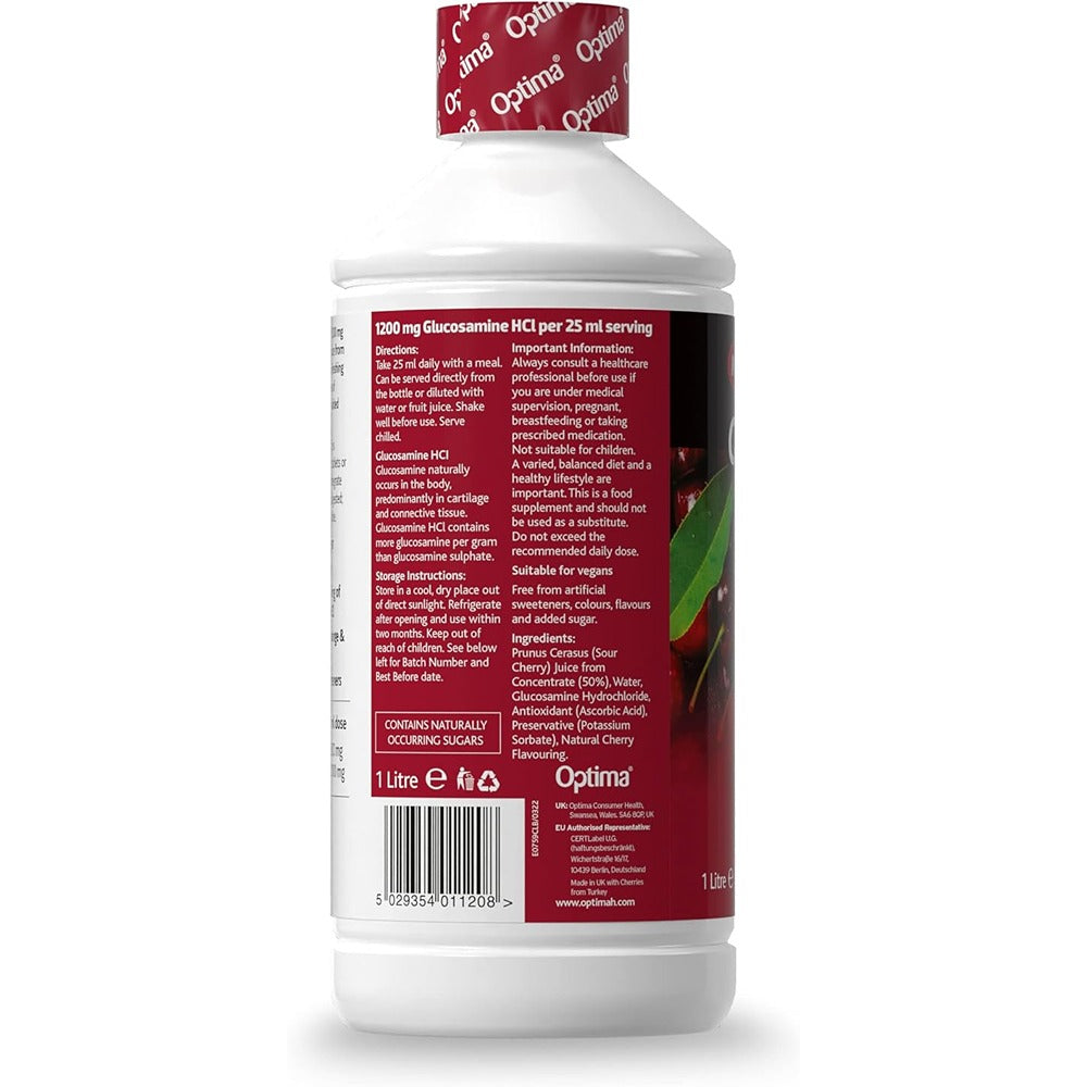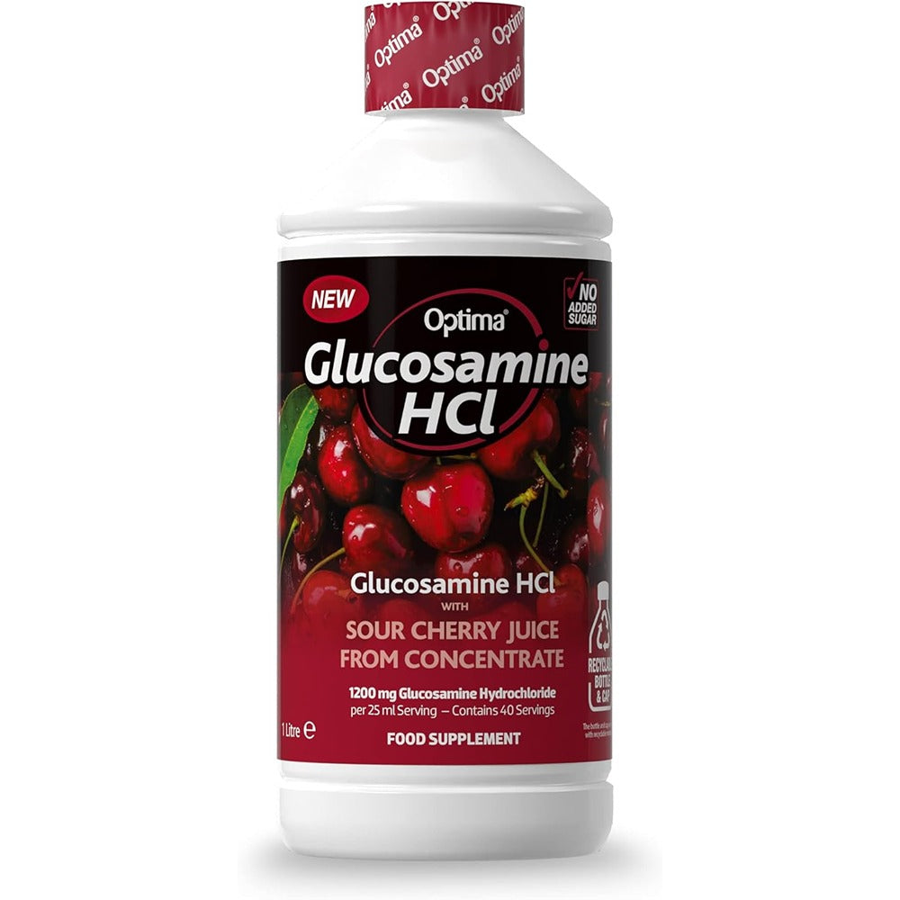 Optima Glucosamine HCl 1200 mg is made with sour cherry juice concentrate to provide a refreshing way to take your daily dose of glucosamine, now with no added sugar. Research indicates that liquid is absorbed more quickly than tablets or capsules, which need to disintegrate before the nutrients can be digested; liquid is much more bioavailable.