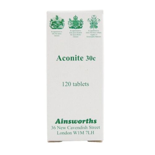 IngredientsAconite 30C homeopathic potency in 100mg Lactose/Sucrose tablets