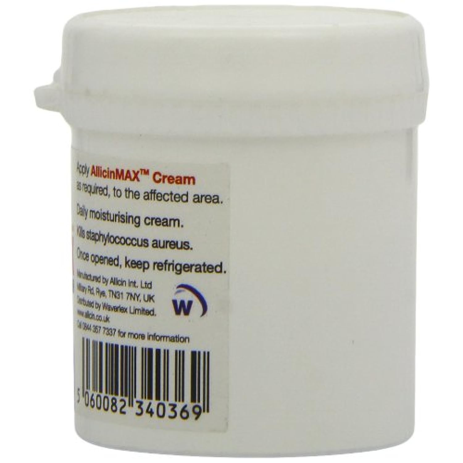 AllicinMax Cream AllicinMax cream is the perfect complement to AllicinMax capsules. The cream has a very pleasant aroma and is very easy to apply as it flows easily and is not at all sticky or messy. AllicinMax cream should be applied as often as required but at least once daily to the affected area. It may also be added to a dressing or sticking plaster. AllicinMax cream contains many natural ingredients and of course the active agent is our stabilised allicin extract.