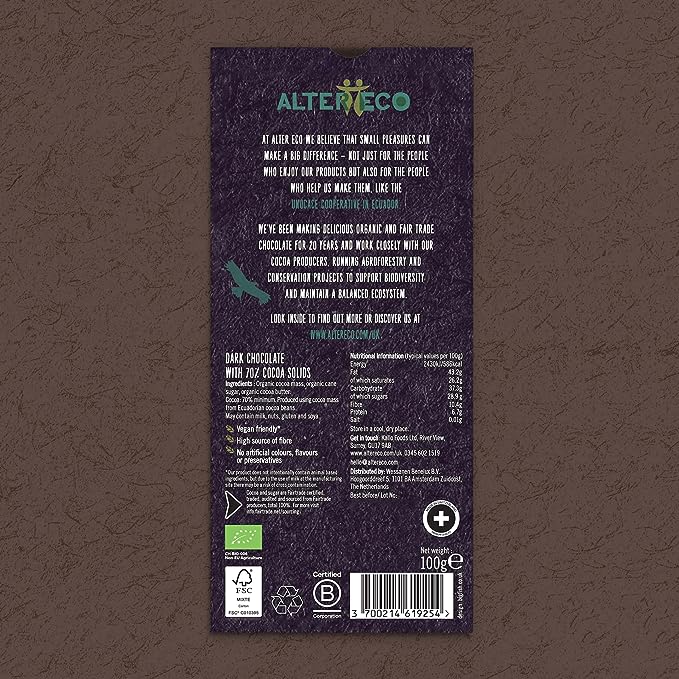 AlterEco AlterEco Dark Chocolate 70% Ecuador 100g