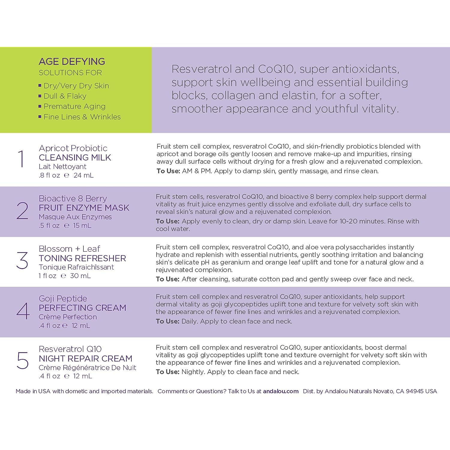 Andalou naturals 5 skin care essential get-started kit, age defying is a travel-sized skin care kit. With five components, the andalou naturals 5 skin care essential get-started kit, age defying is a convenient power combination to help give your skin a nutrient boost, allowing its natural beauty to shine through. This product is non-gmo. Each box of andalou naturals 5 skin care essential get-started kit, age defying contains five pieces