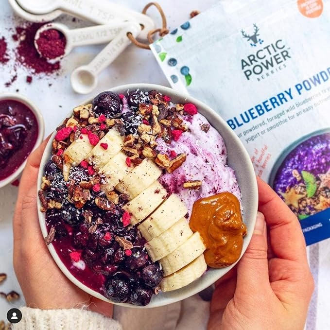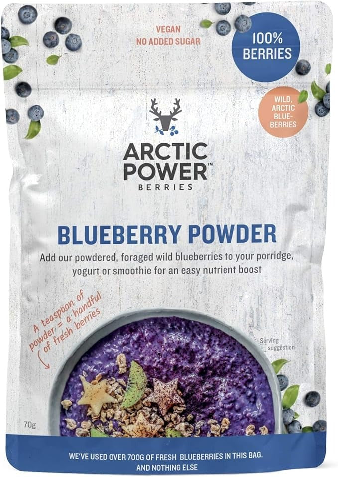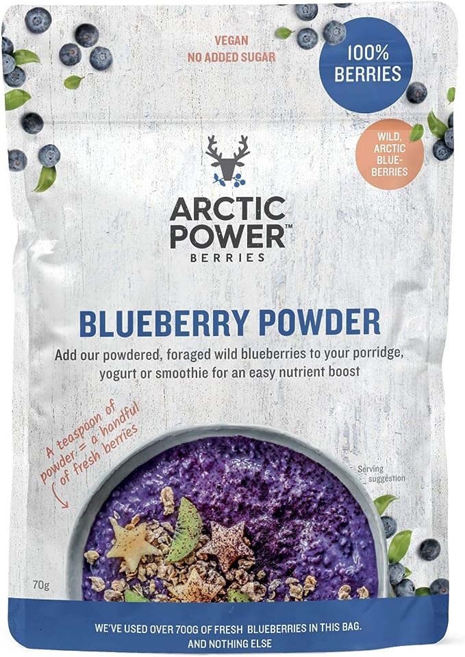 100 percent Blueberry powder, made with wild, nutritious Arctic blueberries (bilberries) from clean, unpolluted nature of Finland. Nothing added.