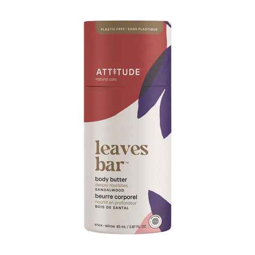 A body butter in solid form? You got it! No more oily or sticky hands thanks to the ATTITUDE leaves bar Body Butter Sandalwood. Its ultra-smooth and creamy texture is packed with vitamin-rich ingredients like shea butter and cocoa butter, as well as Indian cress and watercress leaf extracts to nourish your skin from head to toe. EWG VERIFIED and vegan, this convenient mess-free stick balm will melt upon contact and absorb into your skin, for a flawless way to smooth skin! Plus, you?ll love its velvety sandalwood scent. Beauty truly can be found in a stick.