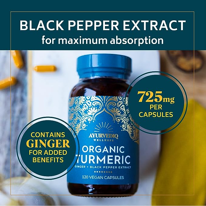 Ayurvediq Wellness Org Turmeric Ginger & Black Pepper Extract 120's