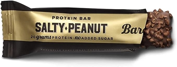 20 grams protein . No added sugar. Zero-Guilt Gooey Chocolate/Protein Bars that come in a range of incredible flavours.. Barebells Protein Bar Salty Peanut 55g