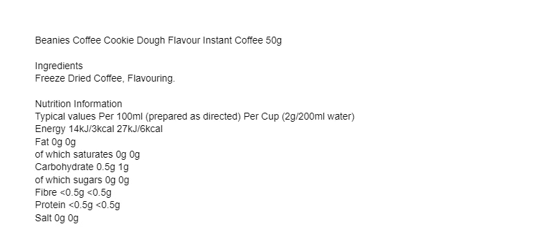 The Beanies brand of flavour coffee offers the customer delicious premium freeze dried Arabica instant coffee in a large variety of flavours with just 2 calories per cup, hence no need for added sugar or sweeteners. Beanies is also vegan, gluten free, wheat free, dairy free and nut free and contains no alcohol. A cup of Beanies is an excellent alternative to a sugary snack or a slice of cake for those looking to lose weight!