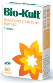 Bio-Kult Advanced Multi-Strain Formulation for the digestive system is a multi-strain probiotic containing 14 strains of probiotics for everyday use. The beneficial bacteria in Bio-Kult are cryoprotected during the freeze-drying process which means they are protected from the harsh acid environment of the stomach and are therefore able to colonize the full length of the gastrointestinal tract. Also, the process allows Bio-Kult to be stored at room temperature without needing to be refrigerated. Bio-Kult can be used on a continuous basis or for short periods of time. Available in 60 capsules.