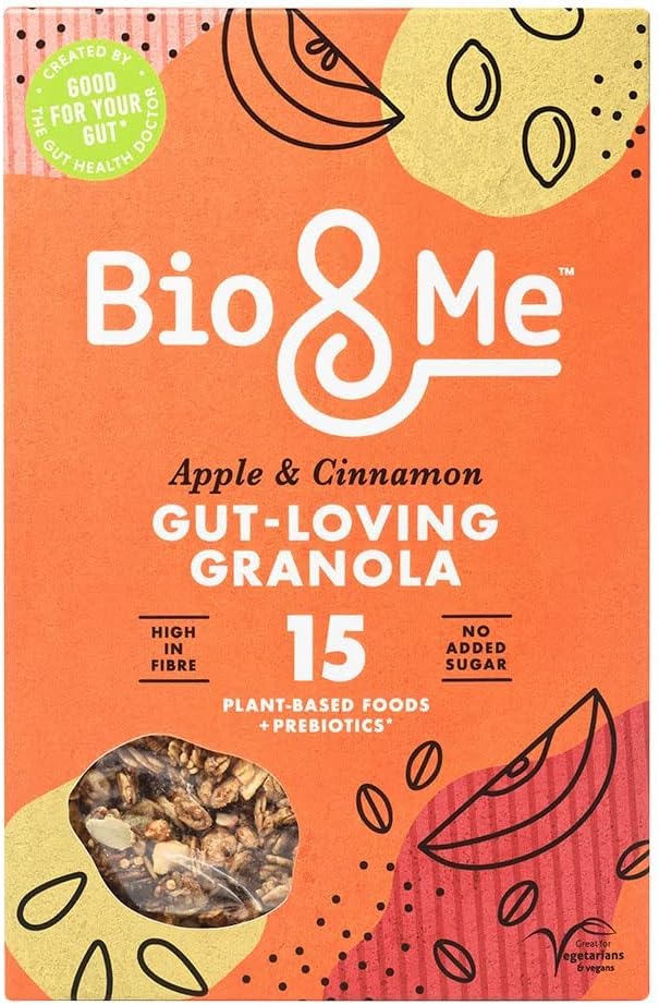 Created by the Gut Health Doctor, Dr Megan Rossi, Bio&Me is the only granola that has the EFSA approved "Good for your Gut" health claim. With 15 different plant-based ingredients it is not only good for your gut, but tastes delicious too. Delicious diversity - good for your gut and your tastebuds. Baked in small batches in England. Vegan. Vegetarian. High in Fibre. No added sugar.