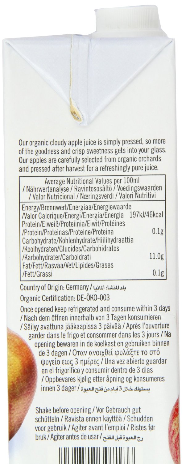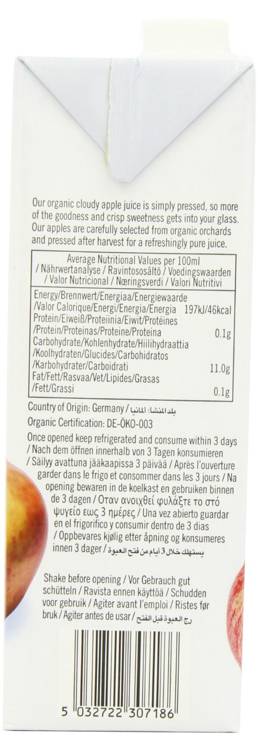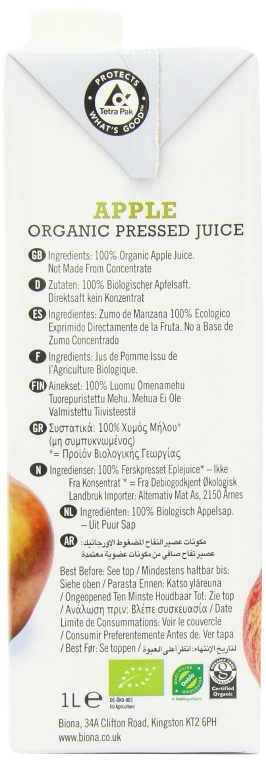 Biona Organic Pressed Apple Juice is the sweet and refreshing, 100 percent organic Apple Juice is just the thing to quench your thirst. Free from any added sugar or artificial flavourings, this juice is made from fresh apples carefully selected from our organic farms, immediately pressed after harvest to ensure maximum flavour and nutrition. Perfect to share round the breakfast table, crisp and cold.