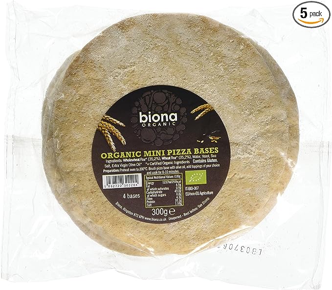 Biona Biona Organic Mini Pizza Bases - Wheat - 4 bases per pk 300g - 5 Pack
