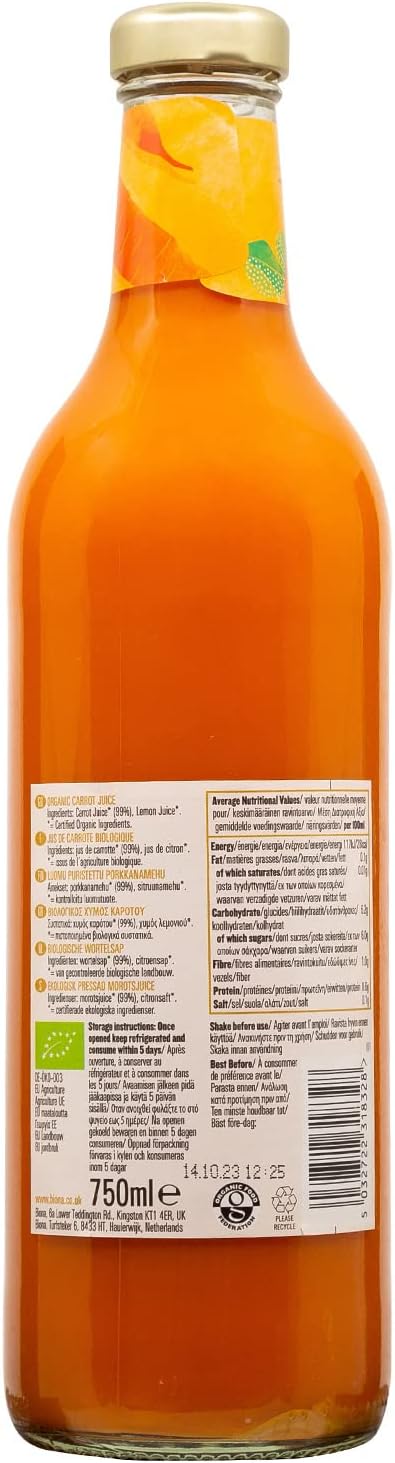 Our Organic Carrot juice is simply pressed, so more of its rich goodness and full flavour reaches your glass.