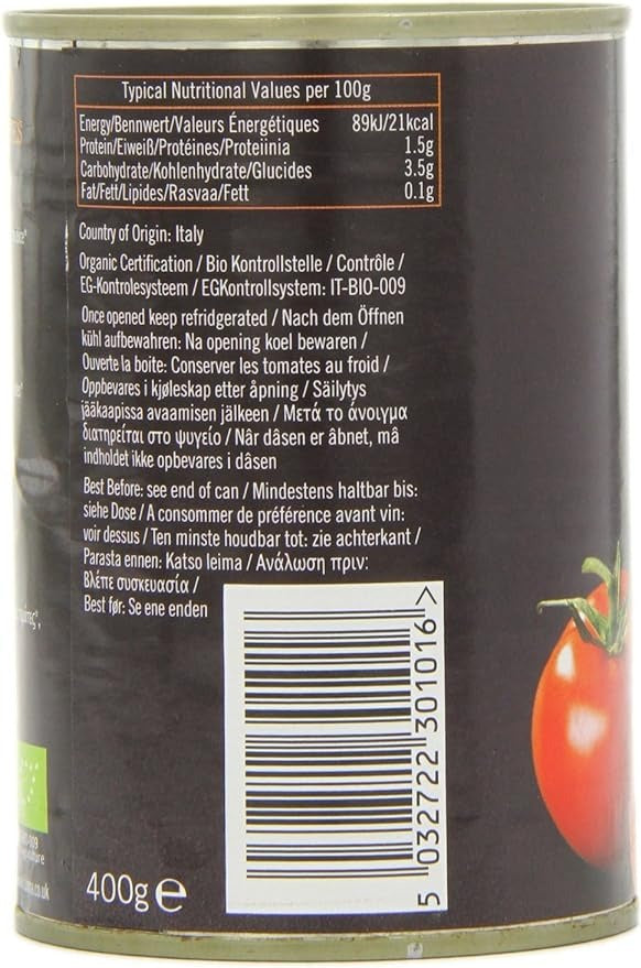 These organic tomatoes are chosen for their sun-ripened sweet goodness. They are simply chopped and then marinated in a rich tomato juice. They are grown on farms selected for their premium organic crops and their sustainable farming methods. A good source of antioxidants, vitamins A and C and lycopene. No added salt.