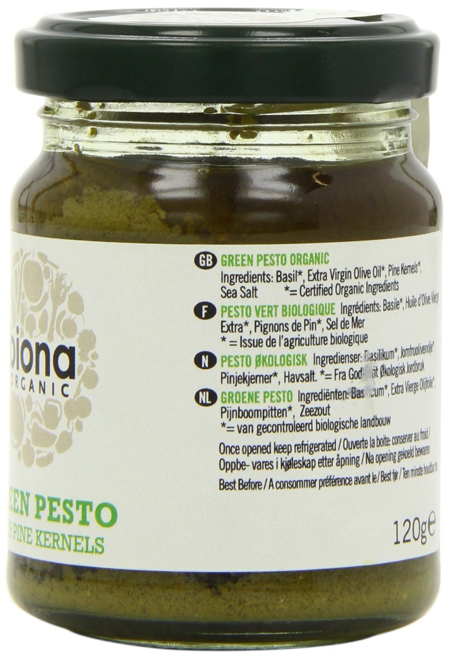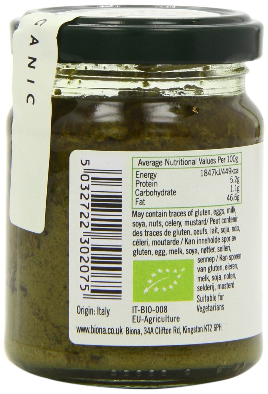 IngredientsBasil*, Extra Virgin Olive Oil*, Pine Kernels* (13%), Sea Salt, * = Certified Organic Ingredients.