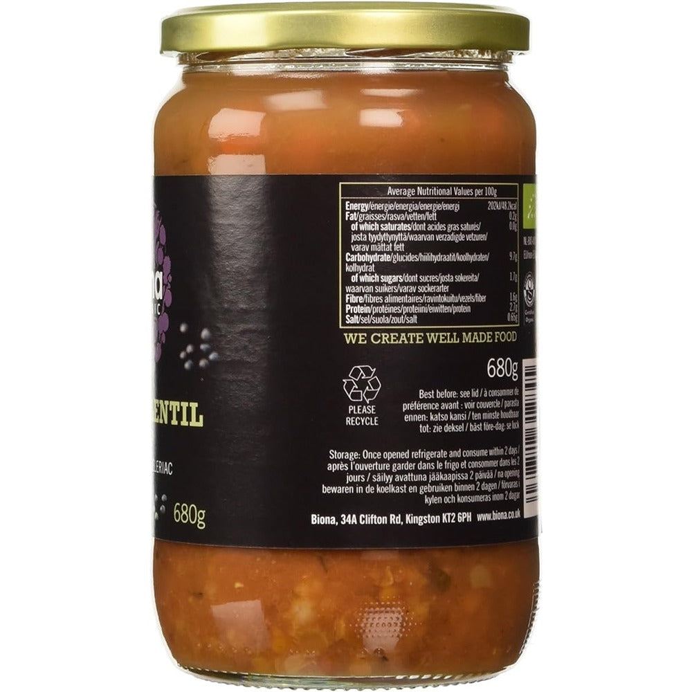 Biona organic hearty lentil is a high quality organic gourmet soup in jar. It has rich flavours and goodness of leeks, carrots and celeriac and certified organic ingredients. it comes with leek and celeriac.