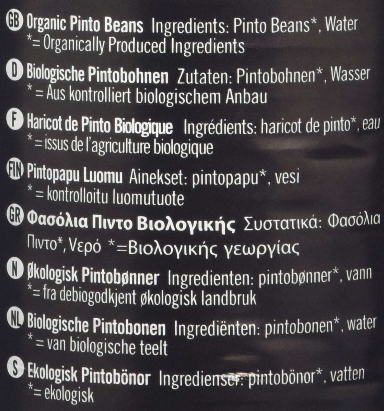 IngredientsPinto Beans*, Water. * = Certified Organic Ingredients.