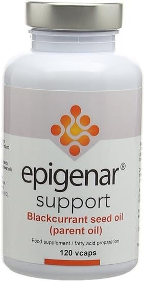 Epigenar Support Blackcurrant Seed Oil is an excellent source of essential fatty acids. It supplies GLA (Gamma linoleic acid) in combination with at least 12 other fatty acids, including the parent essential oils Linoleic acid (LA) and Alpha Linolenic acid (ALA). Produced by a unique CO2 extraction process at low temperatures which prevents oxidation. The result is an ultra-natural composition which is rich in non-oxidized omega-3 and omega-6 fatty acids, in the correct ratio (1:3). It contains 120 vegi capsules.