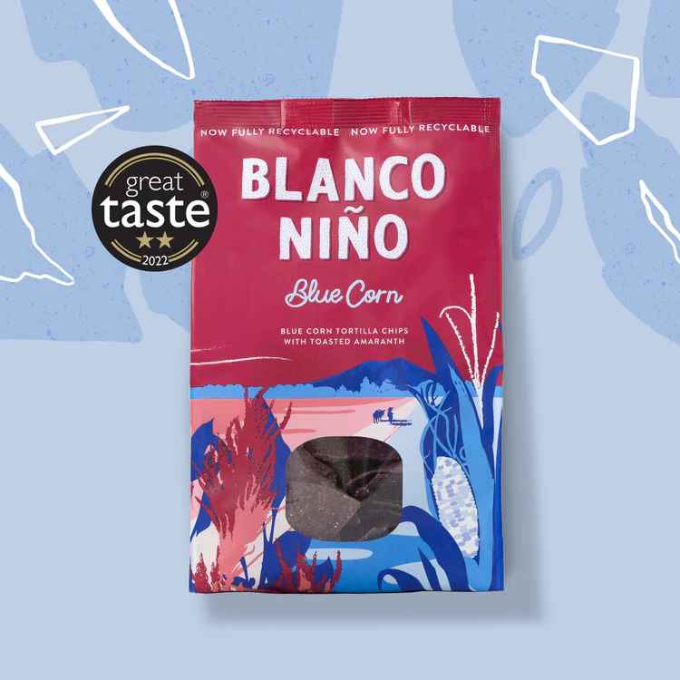 Blanco Ni?o use the ancient Aztec cooking method known as nixtamalisation to produce award-winning, slow-cooked corn tortilla chips. Each batch takes three days to make, producing a truly authentic texture and flavour. In tribute to the communities and traditions that inspire Blanco Ni?o, they married together blue corn and amaranth to create a sweet, earthy flavour. Amaranth was a vital crop, not just for food, but in the spiritual and ritual life of Mesoamerican indigenous civilizations. The Amaranth is sourced from farmers in Milpa Alta, which overlooks Mexico City. These chips are made with the very best ingredients, are gluten-free, vegan-friendly, kosher certified and contain no artificial ingredients.