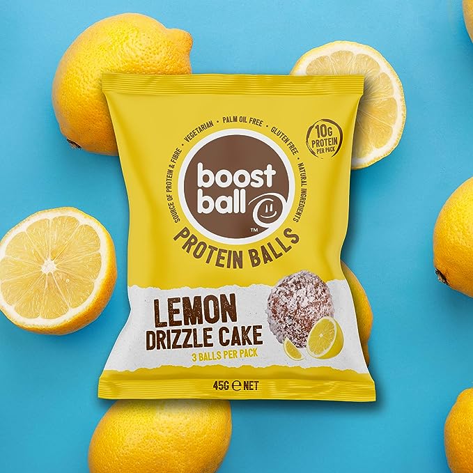 Boostball Lemon Drizzle Cake Protein Balls. With a twist of lemon and pinch of coconut, it?s all aboard the zest express for our dairy free luscious lemon lovely! High in protein and high in satisfaction. You know you?re gonna dig this! At Boostball they wanted to make sure they kept to the idea of ?Less Ingredients, More Protein?, but also make sure the ingredients used were natural, healthy and beneficial to our bodies. All the energy balls are high in protein which is the building blocks for muscle growth. Containing only natural sugars found in fruits and plants. Perfect for a nutritious snack, after workout protein replenishment or as an energy booster during exercise. Like all good protein bars, the balls also contain a rich source and wide variety of vitamins and minerals such as Vitamin A, B, E, B12, Calcium, Iron and Zinc. Made with raw cold pressed ingredients so there is no baking and no refining. Just pure healthy protein bliss with every bite!