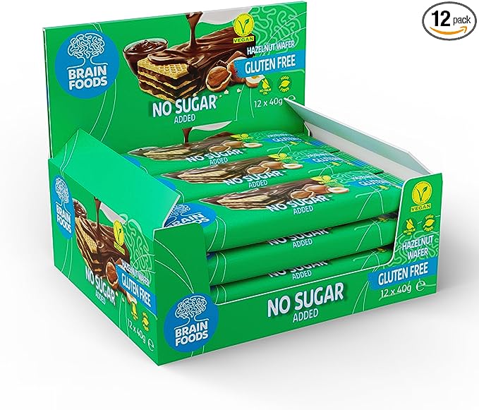 Brain Foods No Sugar Gluten Free Hazelnut Wafer 30g - 12 Pack