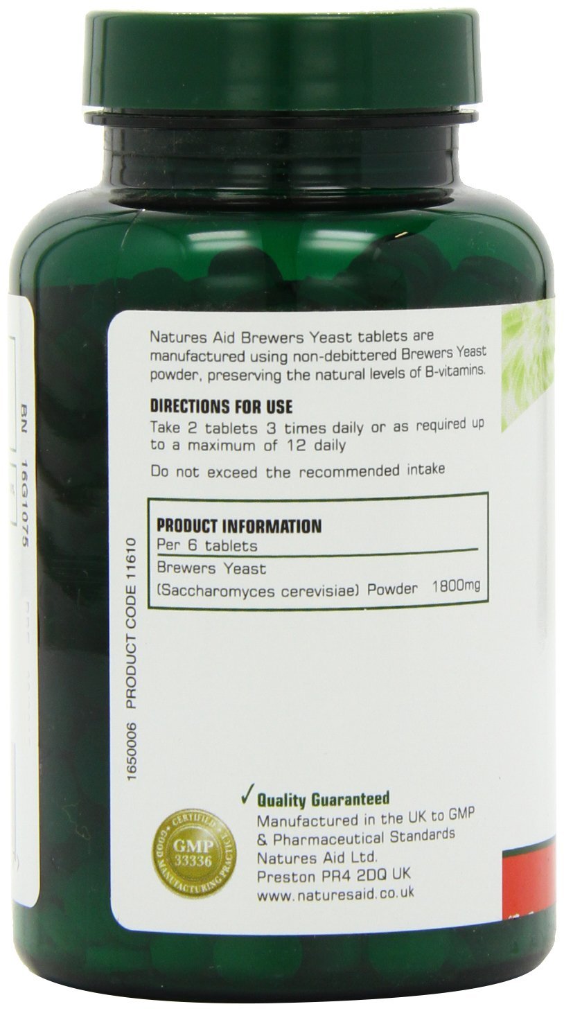 Natures Aid 300mg Brewers Yeast 500 Tablets are made from Saccharomyces cerevisiae and has long been used in the production of beer and wine. Brewers Yeast is also a nutritional supplement, providing a source of B vitamins, amino acids and minerals. Natures Aid Brewers Yeast tablets are manufactured using non-debittered Brewers Yeast powder, preserving the natural levels of B-vitamins.