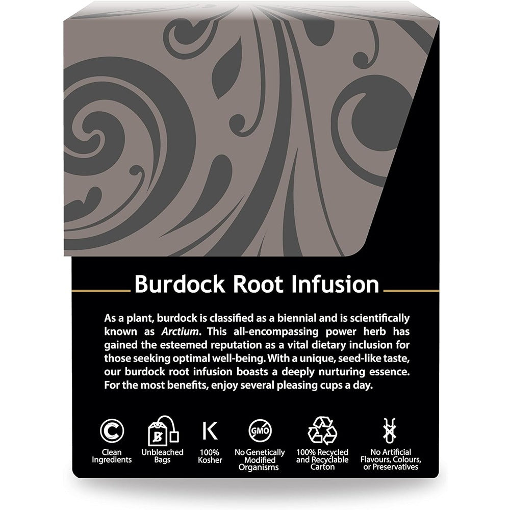 - Our burdock root infusion is completely organic and GMO free, and we use no flavourings, additives or artificial ingredients.