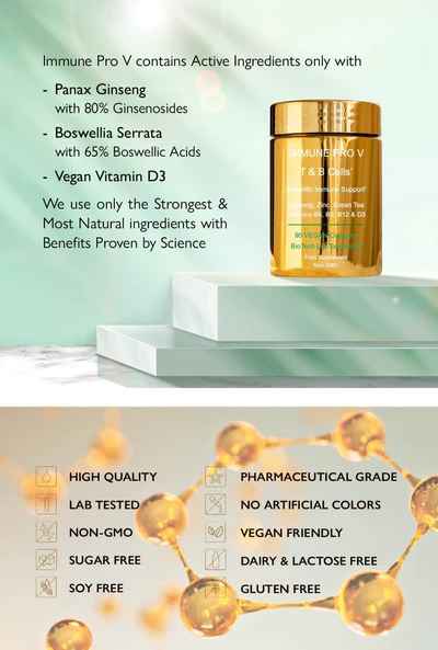 IngredientsVitamins 85, 89 Folate, and B12, along with Vegan Vitamin D3, Panax Ginseng extract with 80% Ginsenosides, Chelated Zinc TriComplex, Green Tea extract standardized to contain 50% EGCG, Boswellia Serrata extract with 65% Boswellic Acids, Quercetin and Rutin as bioflavonoids, Cats Claw extract, and Garlic extract standardized to contain 10% Allicin