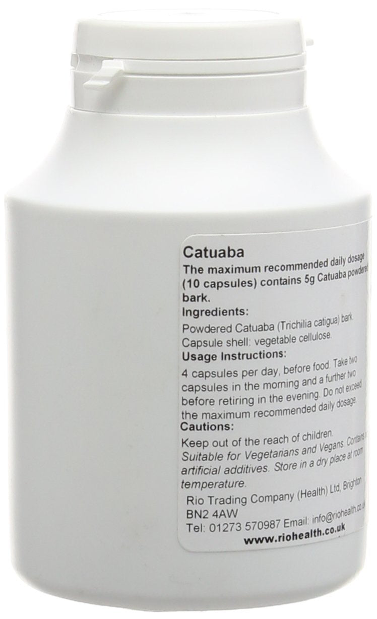 Rio Amazon 500mg Catuaba Vegetarian Capsules helps to sleep well. A source of flavalignans, including cinchonain. Catuaba is the most famous of all aphrodisiac plants from Brazil and has been celebrated by the local population for generations. It is popularly used by couples to maintain a healthy libido. Available in 120 capsules.