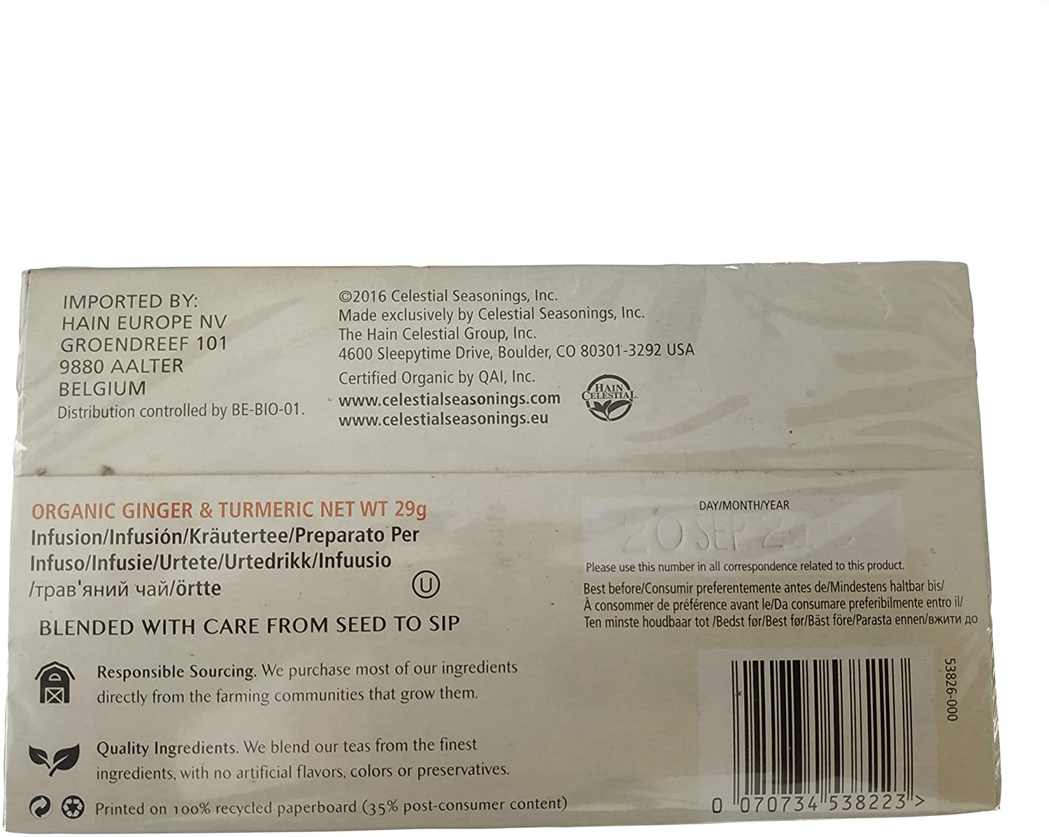 Celestial Seasonings Organic Ginger & Turmeric Herbal Tea 20 bags