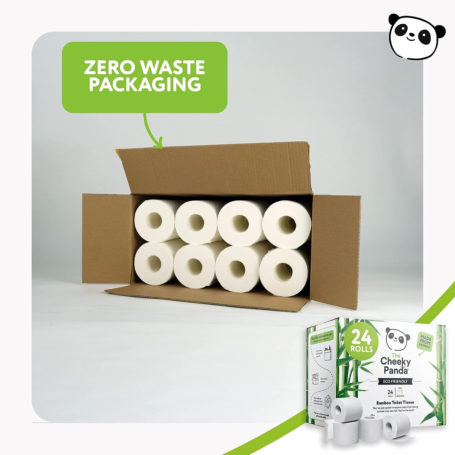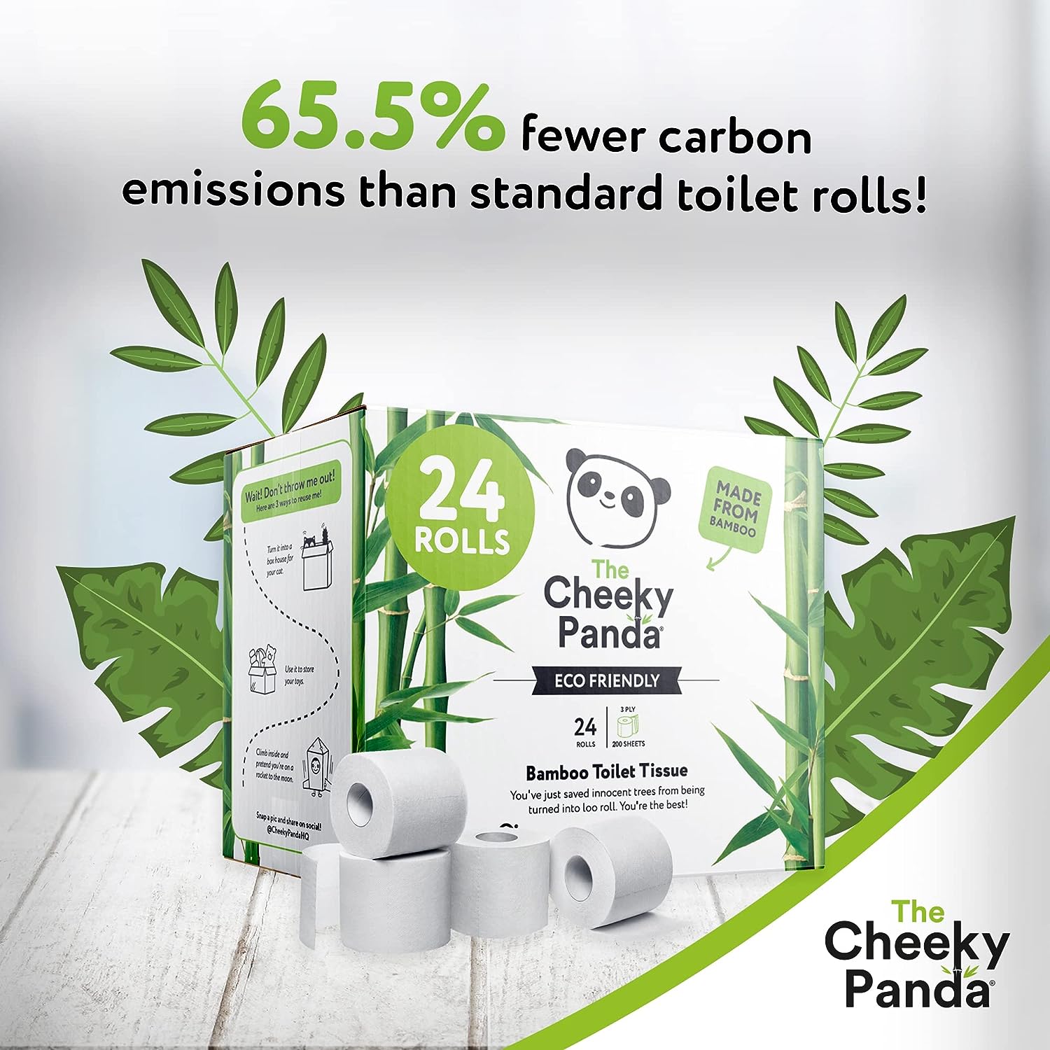 Bamboo Toilet Rolls – Bamboo tissue paper is a sustainable alternative to traditional loo roll. The production of our bamboo toilet roll produces 65.5% fewer emissions than traditional methods Plastic Free Packaging - This bulk buy toilet roll pack comes with zero plastic or unnecessary packaging! Helping you reduce waste and making our world a better place for all Kind To Your Skin - The soft and smooth nature of bamboo tissue paper gives our toilet roll a silky smooth touch. With the added benefit of being stronger per sheet than traditional loo roll Hypoallergenic – Bamboo toilet paper traps fewer dust particles, making it a great alternative toilet tissue for people with allergies. Try our bamboo toilet roll today! Toilet Roll Bulk Buy – We at The Cheeky panda love saving both the planet and your wallet. That’s why we have offered our bamboo toilet roll in these large bulk packs. By doing so, we can save on carbon emissions and costs during fulfilment, passing these savings onto you!