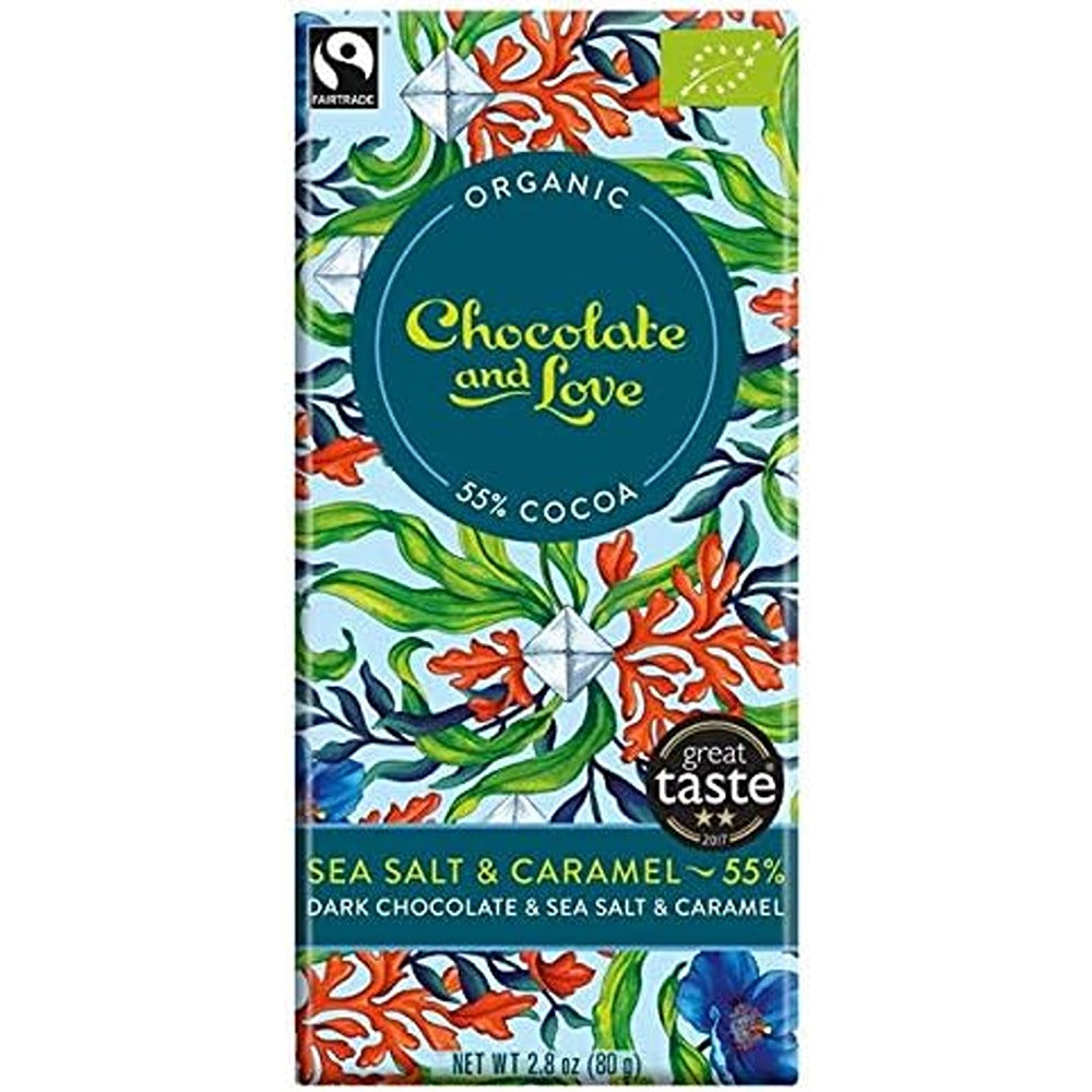 Chocolate and Love Organic Dark Chocolate Bars with caramel and sea salt. To all the fans of sweet and salty pairings; an intriguing combination. The fusion of the caramel crunch and the dash of sea salt create a deliciously naughty flavour experience. But be warned, it is addictive. Comes in 14 bars of 80 g each.