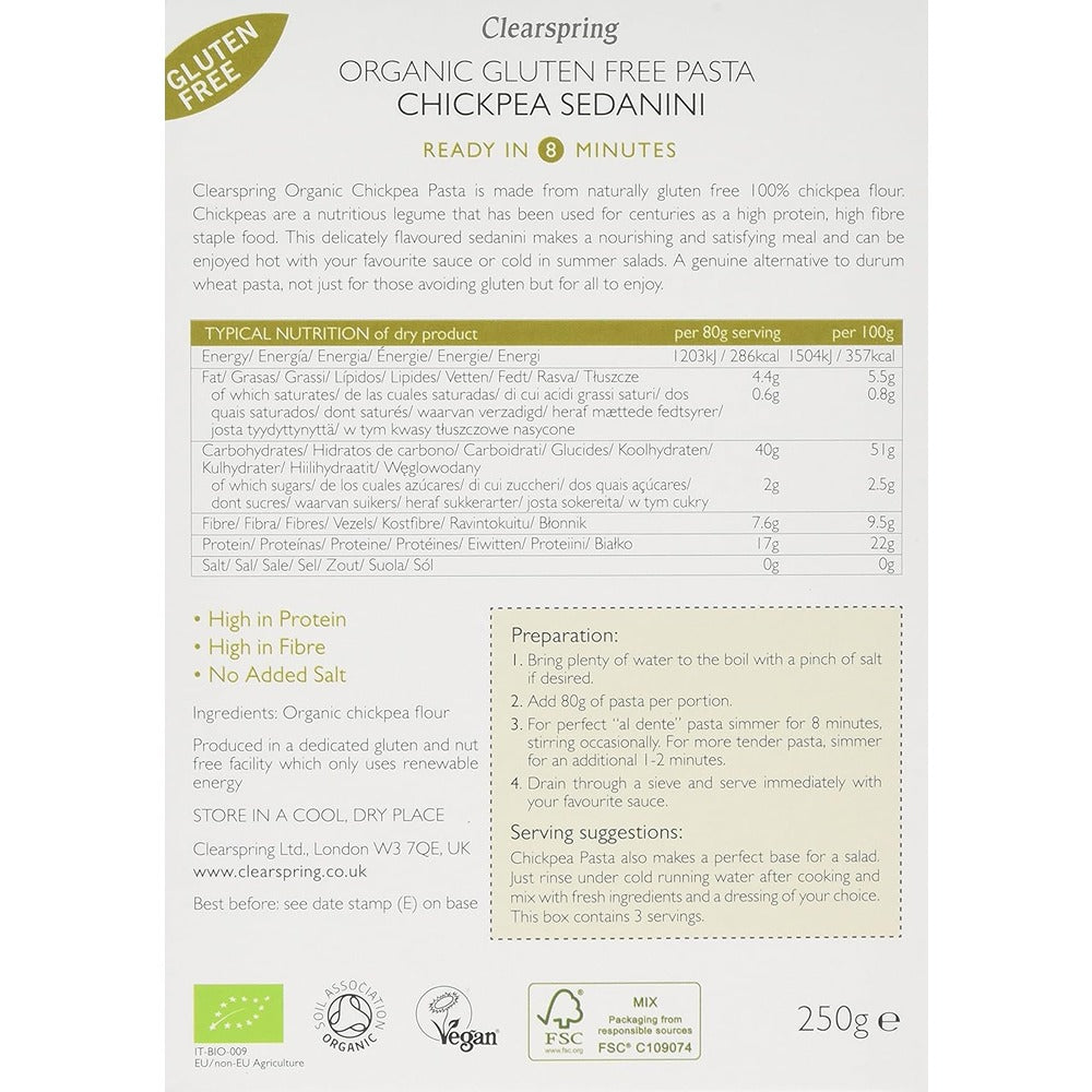Clearspring Organic Chickpea Pasta is made from naturally gluten free chickpea flour and a pinch of psyllium husk for added fibre. Chickpeas are a nutritious legume that has been used for centuries as a high protein, high fibre staple food. This delicately flavoured sedanini makes a nourishing and satisfying meal and can be enjoyed hot with your favourite sauce or cold in summer salads. A genuine alternative to durum wheat pasta, not just for those avoiding gluten but for all to enjoy