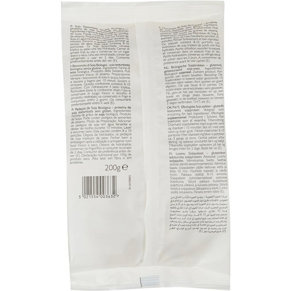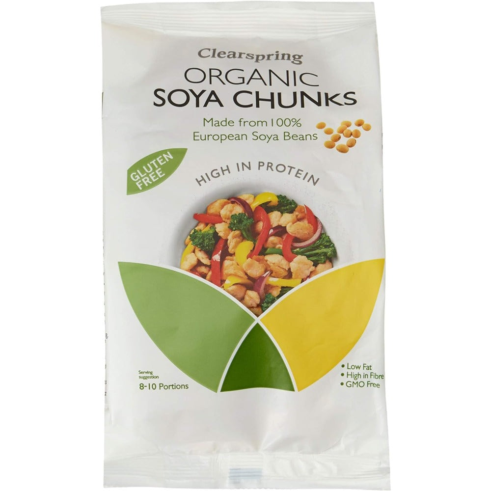 Clearspring Gluten Free Organic Soya Chunks are a quick cook vegetarian protein which can be used in a multitude of recipes instead of meat. Soya beans are simply cold pressed to remove their oil content then steamed under pressure to form chunks and finally dried. With a tender yet substantial texture it is extremely versatile and will take on the flavour of whatever dish you are cooking.