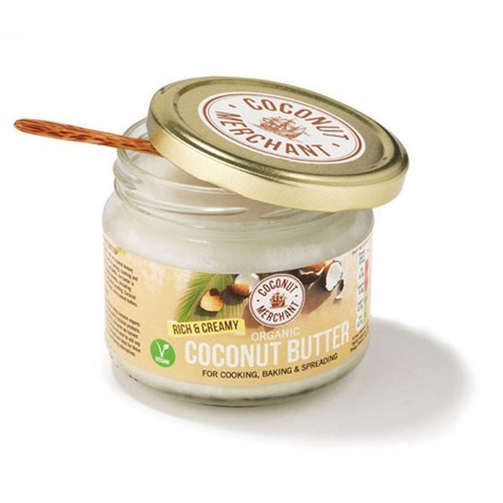 Coconut Merchant Organic Coconut butter has a delicious creamy flavour and is a natural alternative to traditional, dairy-based butters. It is made directly from the meat of the coconut itself. Rich in lauric acid, calcium and magnesium, coconut butter can boost immunity and bone strength, as well as help diminish the strength of harmful bacteria and viruses. Filled with healthy fats, boosts metabolism and keeps you full for longer, aiding in weight loss. It is add to in cooking, curries, baking, smoothies or enjoy on toast and also it will add a delicious sweetness. Available in 300 g.