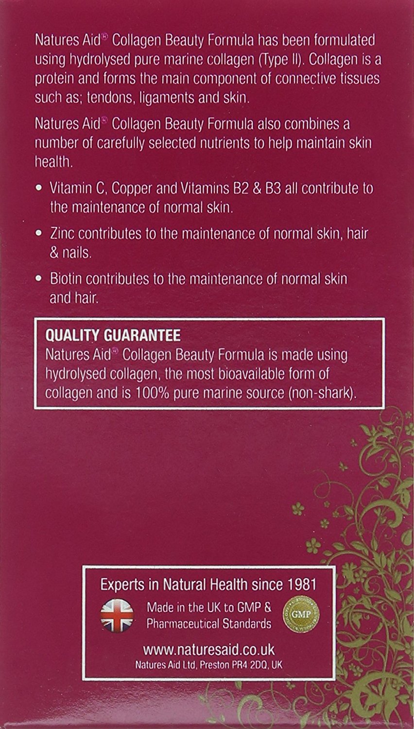 The Natures Aid Collagen Beauty Formula Capsules has been formulated using hydrolysed pure marine collagen (Type ll). Collagen is a protein and forms the main component of connective tissues such as tendons, ligaments and skin. Combines a number of carefully selected nutrients to help maintain skin health.