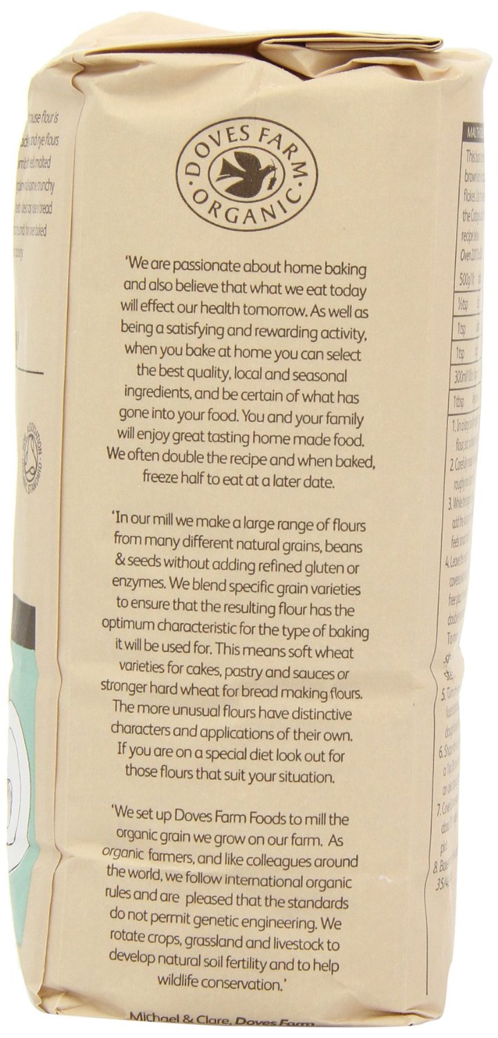 Doves Farm Organic Malthouse Bread Flour is special blend of wheat, rye and barley malt flours with malted wheat flakes. Ideal for oven baked yeast cookery and in bread machines. This flour is Soil Association and Kosher certified. It is available 5 packets of 1 kg each.