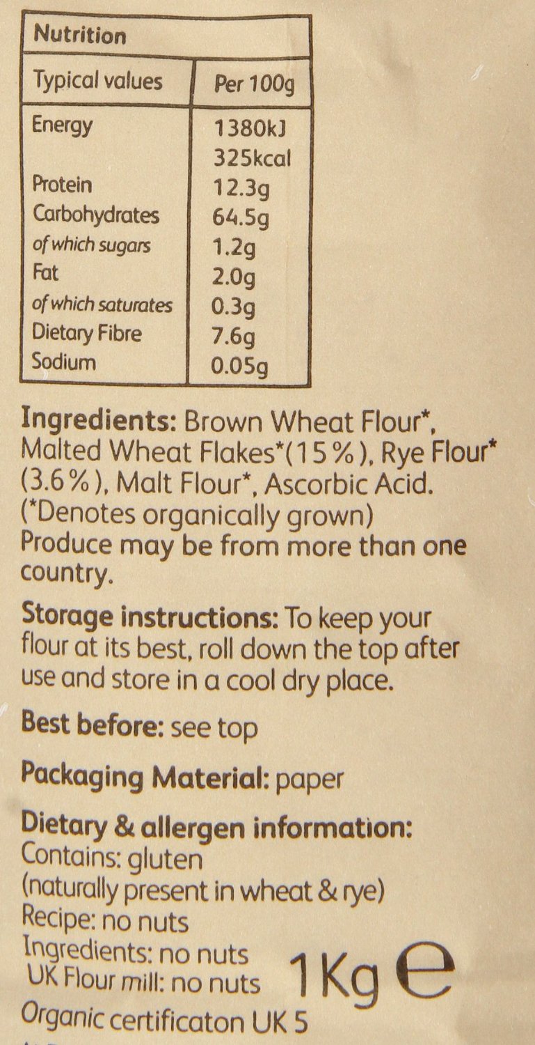 IngredientsWHEAT flour* (contains GLUTEN), malted wheat flakes*15% (contains GLUTEN), rye flour*3% (contains GLUTEN), BARLEY malt flour 3% (contains GLUTEN), ascorbic acid.