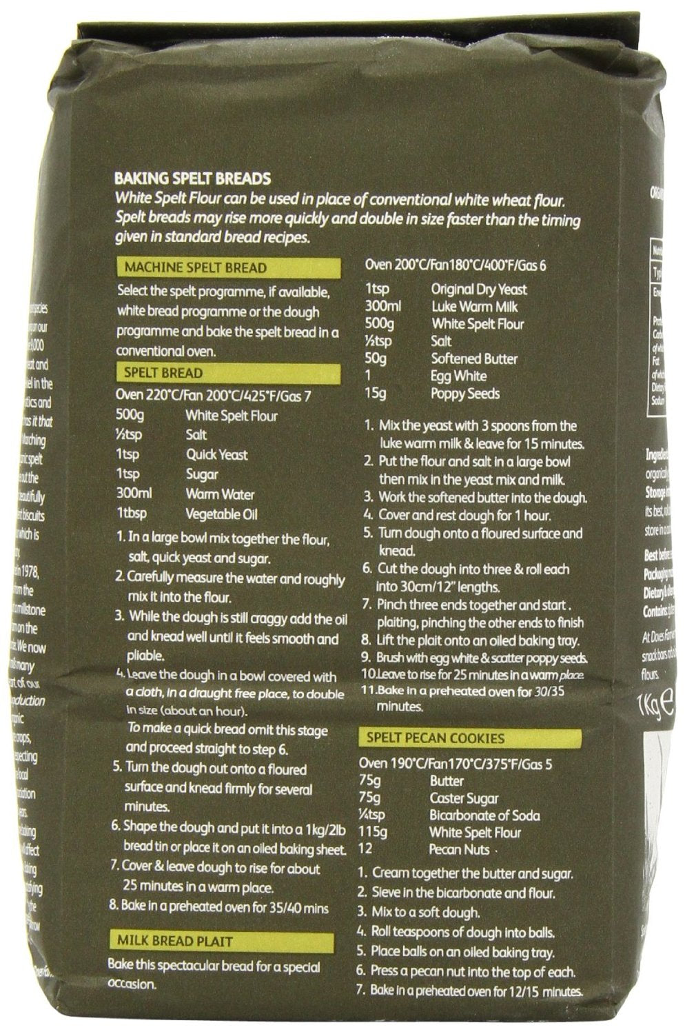 - Spelt flour is ideal for speciality pastry, yeast cookery and bread making