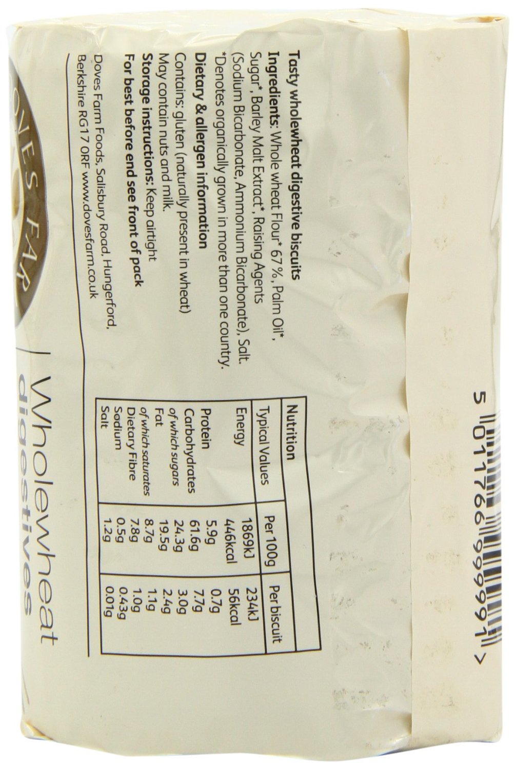IngredientsWholemeal WHEAT flour*67%, palm oil*, sugar*, BARLEY malt extract*, raising agents (sodium bicarbonate, ammonium bicarbonate), salt. *Organic produce.