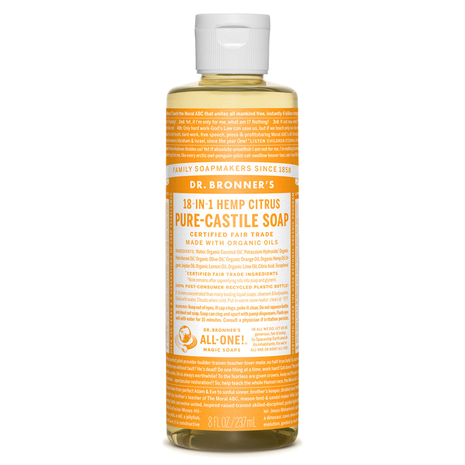 Dr Bronner Org Citrus Castile Liquid Soap 237ml. Orange scented