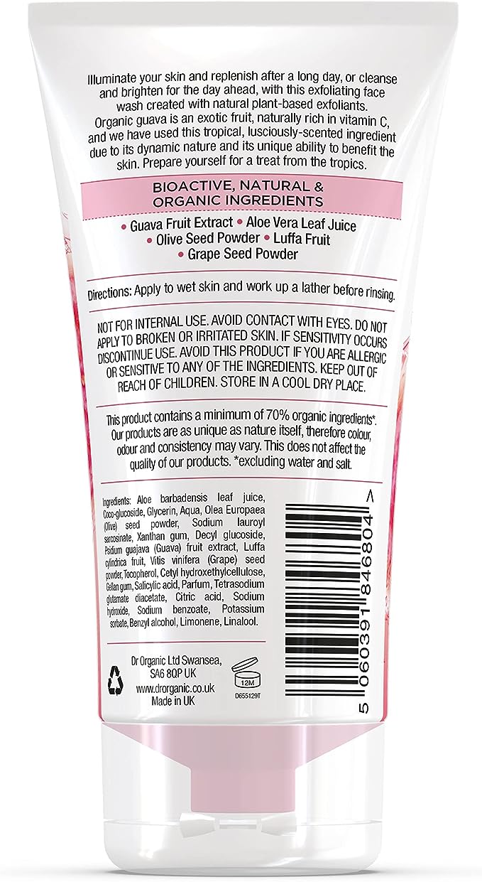 Illuminate your skin and replenish after a long day, or cleanse and brighten for the day ahead, with this exfoliating face Wash created with natural plant-based exfoliants. Organic guava is an exotic fruit, naturally rich in Vitamin C, and we have used This tropical, lusciously-scented ingredient due to its dynamic nature and its unique ability to benefit the skin. Prepare yourself for a treat from the tropics.