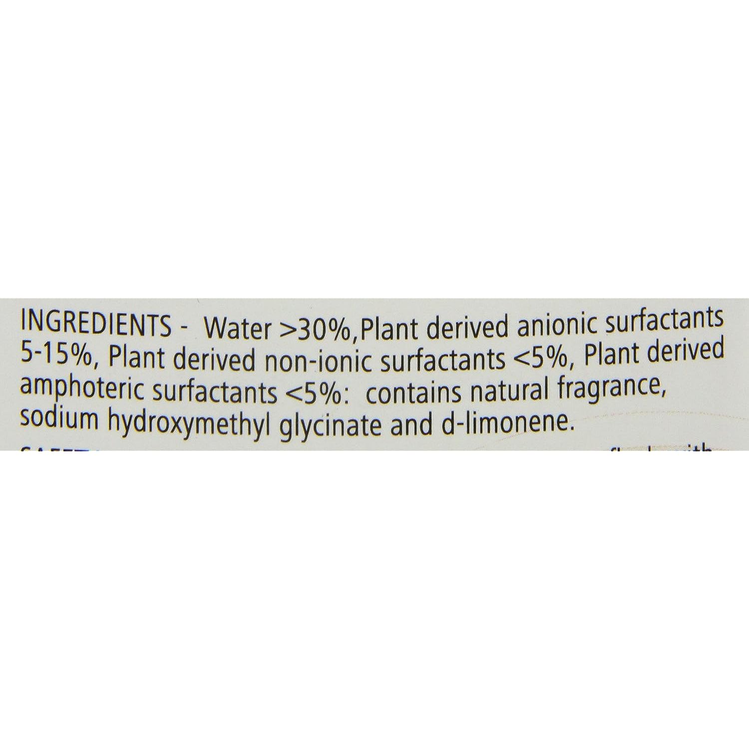IngredientsProprietary blend of biodegradable, cationic surfactants, preservative and natural fragrance. Sodium Laureth Sulfate, Coco amido propyl dimethyl betaine, Fatty alcohol ethoxylate, Citric acid, Sodium chloride, Sodium hydroxymethylglycinate, Fragrance, d-limonene.