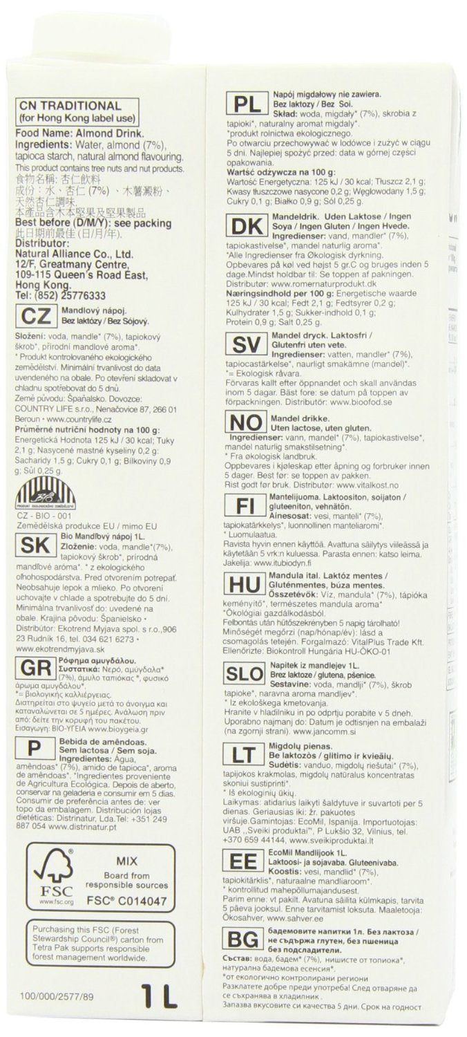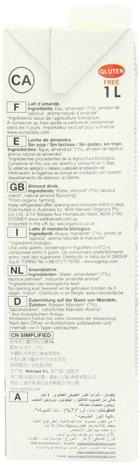 IngredientsWater, ALMOND* (7%), tapioca starch*, natural ALMOND flavouring*. *From organic farming.