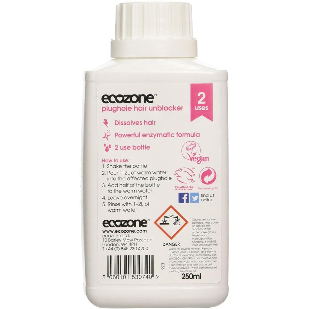 Ecozone Plughole Hair Unblocker 250ml - 2 Pack