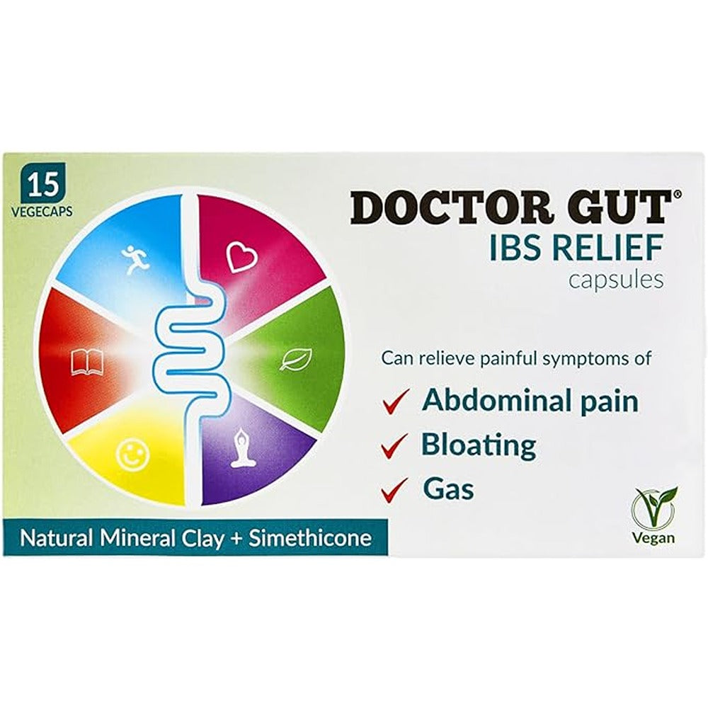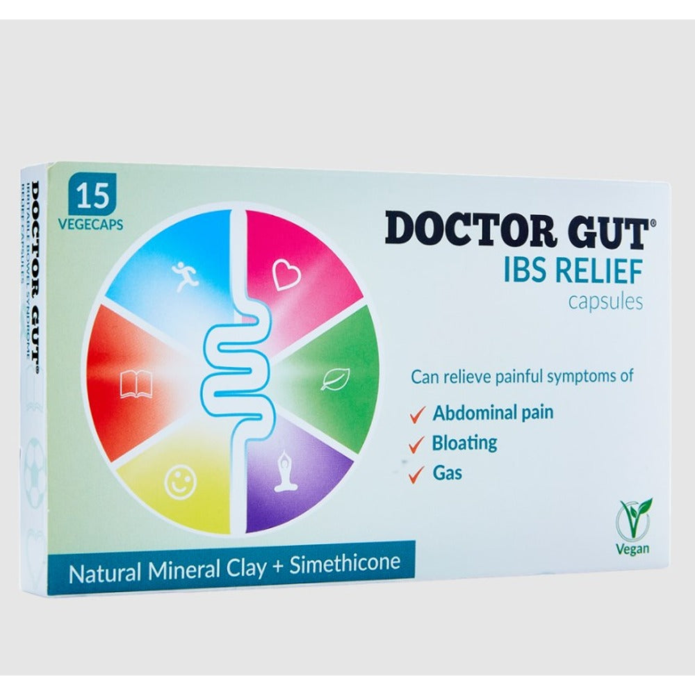 Developed to relieve symptoms of abdominal pain, bloating and gas associated with IBS.Contains natural mineral claySuitable for vegans.Doctor Gut IBS Relief is a medical device intended to relieve the symptoms of excessive accumulation of gas inthe abdomen, in adults and children 12 years and upwardsIBS can be characterised by abdominal pain, discomfort and bloating. IBS Relief contains natural mineral clay to help relieve the symptoms of feeling bloated, abdominal distension, fullness, belching and pain associated with gas in the abdomen.