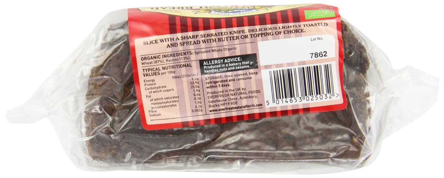 Everfresh Bakery Organic Sprouted Wheat Bread with Raisins is a wholesome loaf of bread made with with organic sprouted wheat and raisins. This highly nutritious loaf is ideal lightly toasted as a snack or as the base of a tasty sandwich
