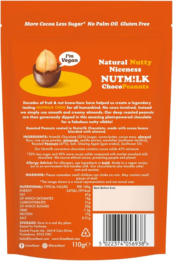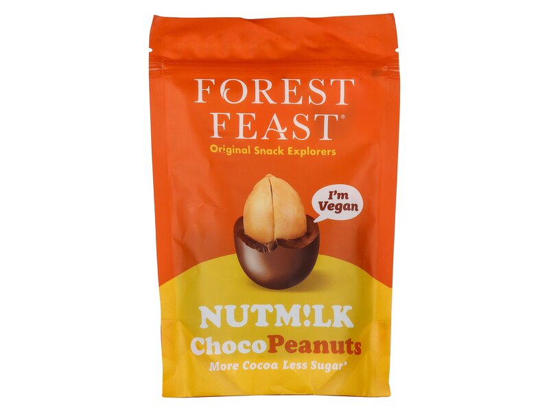 Forest Feast NutmLk Chocolate Peanuts Share 110g. Vegan Mlk Chocolate Coated Peanuts. Vegan, Dairy, Gluten and Palm Oil Free.