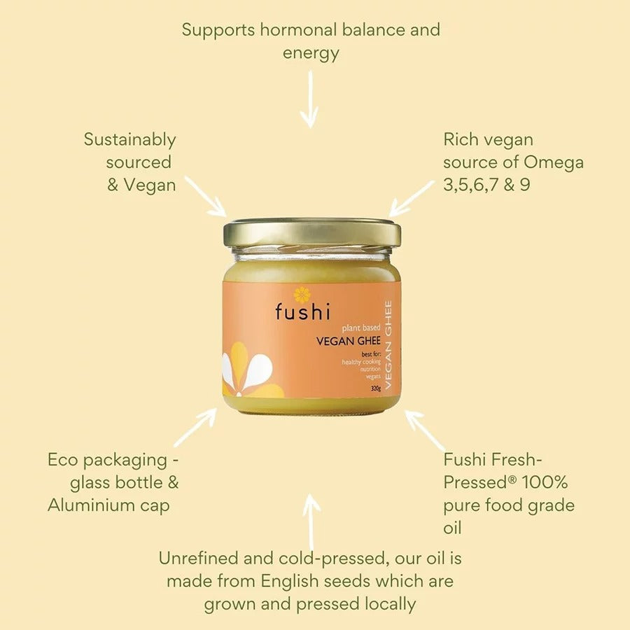 A smooth, aromatic blend of pure cold pressed plant butter and oils, a wonderful replacement for traditional Ghee Butter. Fushi Vegan Ghee is a dairy-free, plant-based, and a healthier alternative.